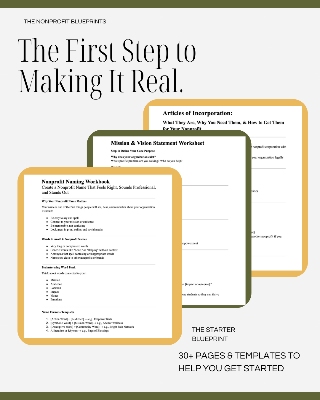 Because I know there are so many people out there with incredible ideas, big hearts, and powerful missions who just need a clear path to get started. This is the resource I wish I had when I was starting. No fluff. No overwhelm. Just step-by-step guidance, ready-to-use templates, and a supportive community that gets it.
