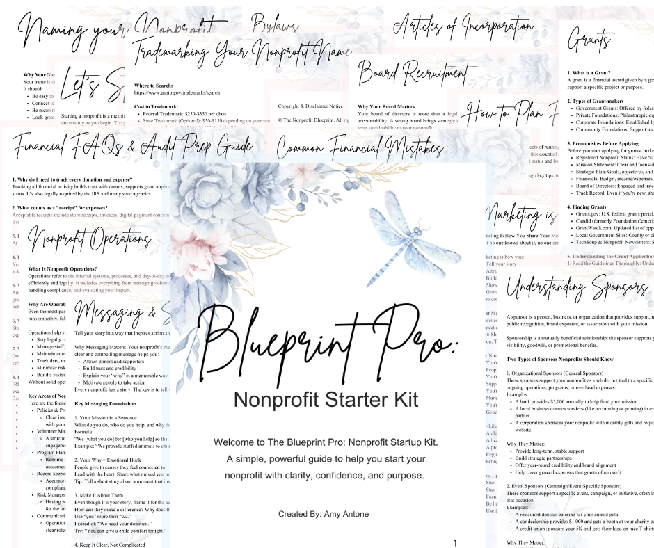 Amy Antone is the founder of Cuddles of Hope Foundation and the creator of The Nonprofit Blueprint. With a passion for helping others turn their ideas into impact, Amy combines real-world experience and heart to guide aspiring nonprofit founders through every step of the journey. She believes that with the right tools, support, and a little encouragement, anyone can build something meaningful.